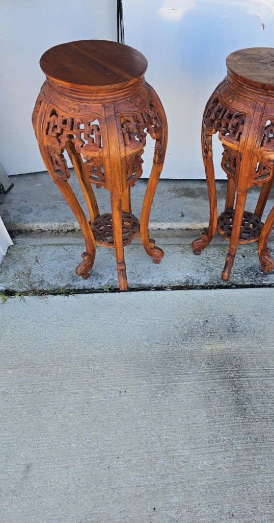 20th Century Round Chinoisere carved plant stand. Great condition, Mahogany wood. 2 stands $ 2,000 pair.