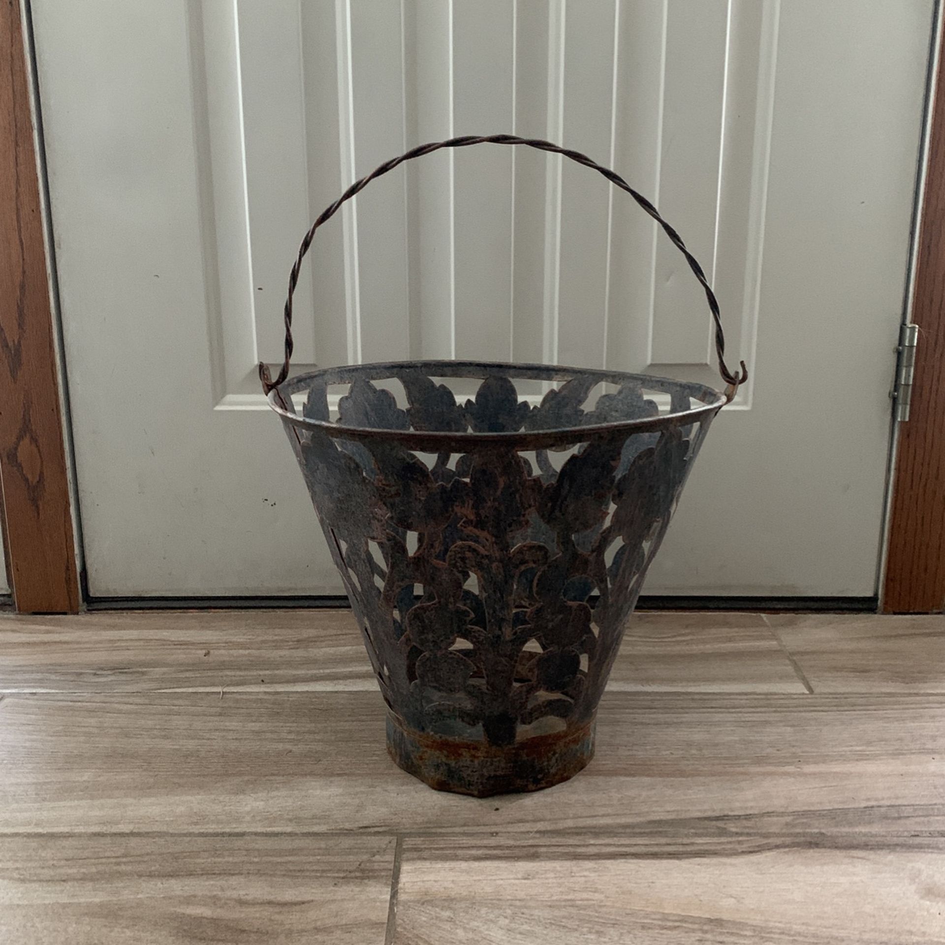 Large Floral Rustic Patina Floral Metal Basket Farmhouse Planter