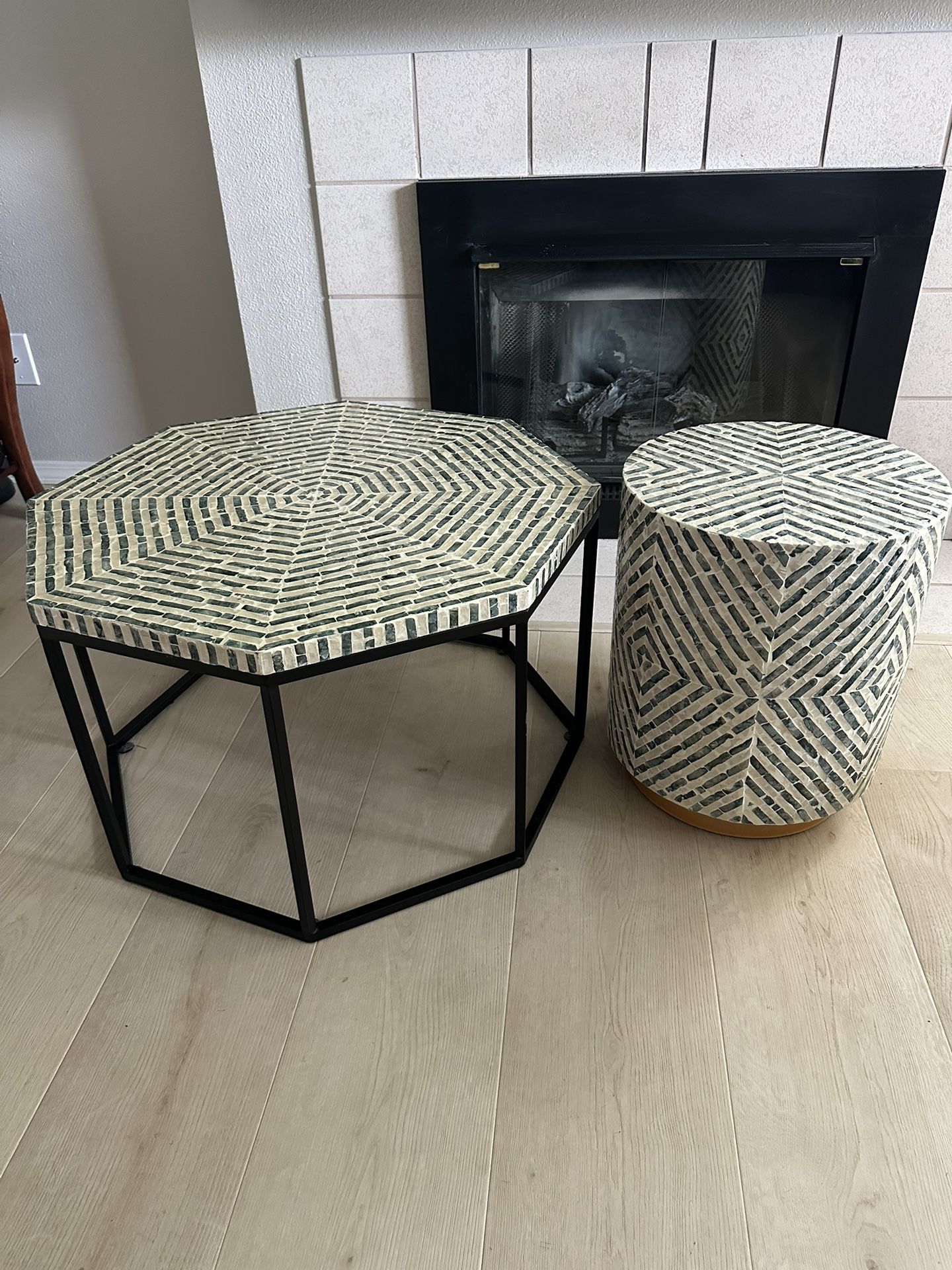 Coffee table and matching side table Table dimensions: 17”hx28”w Side table dimensions: 18.5”hx15”w