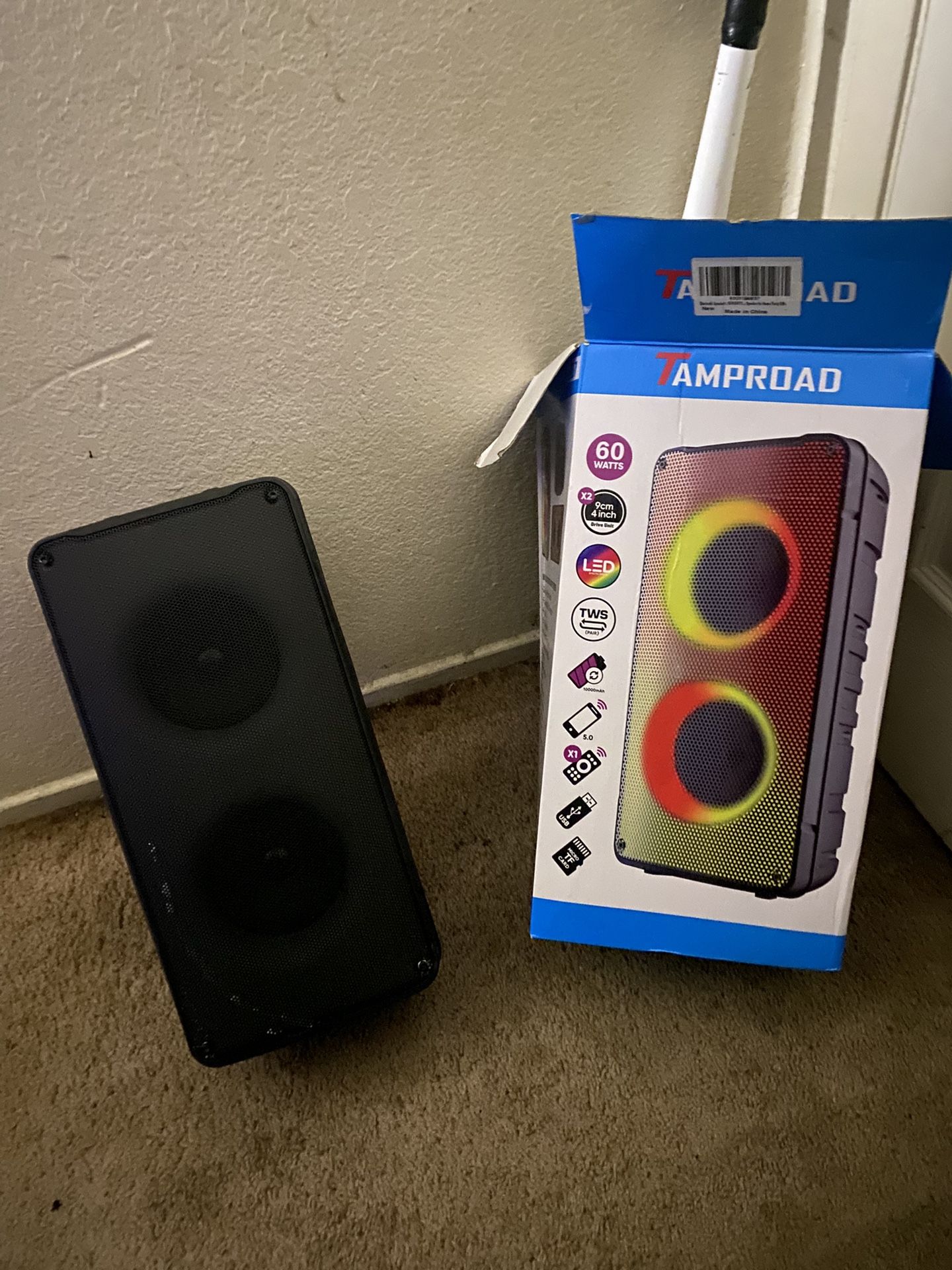 COMES WITH REMOTE -LED Lights -60 WATTS/80W Peak -use it for house parties Feel free to ask me questions , there nothing wrong with the speaker Negotiable