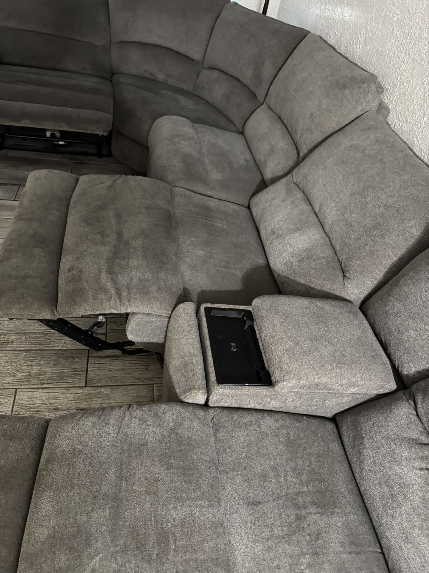 Wireless phone station charger Hidden Cup holder with storage USB ports in the middle and both sides for charger 3 recliner 1 yr old Good condition. Asking 1200 obo