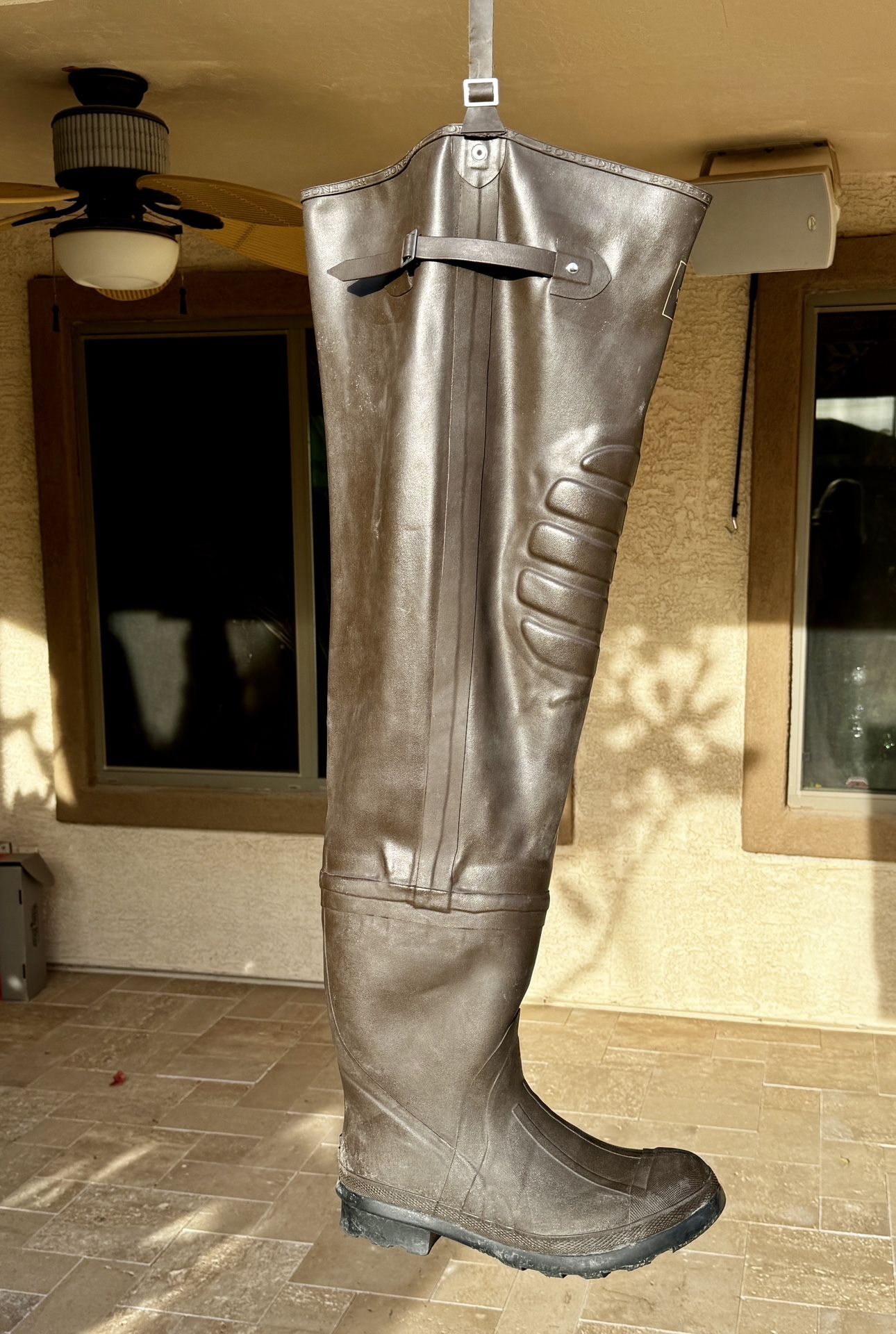 Hip Waders- bought for $80 at Bass Pro Shops. Only used once for water sampling at work. Size 12-14. I wear a 12” shoe but wanted extra room. They are 34” tall and connect to your belt with provided straps.