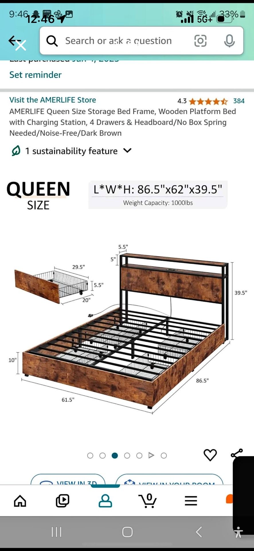 AMERLIFE Queen Size Storage Bed Frame, Wooden Platform Bed with Charging Station,