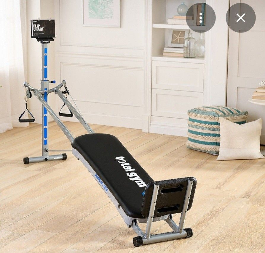 Total Gym Apex G3 full-body home workout machine in excellent condition. Low-impact training based on bodyweight resistance — effective, smooth and joint-friendly. Ideal for toning, strength, core, stretching and rehab-style workouts. This is the same Total Gym system used and promoted by Christie Brinkley. Very sturdy, stable and well maintained. Currently folded and packed for pickup. ✔ Adjustable resistance levels ✔ Suitable for beginners to advanced ✔ Folds for storage ✔ Smooth glide, solid frame 📦 Box size: **56" × 18" × 10" ⚖️ Weight: 83 lbs Retail price ~$490 (over $600 with tax & delivery). 💵 Price: $350 (firm) 📍 Pickup only – Valley Village (heavy item) Keywords: total gym, apex g3, home gym, workout machine, bodyweight training, fitness equipment, pilates style, rehab, strength training