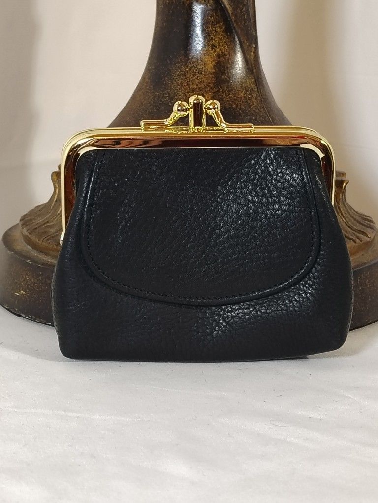 Triple change purse Black and gold tone unbranded genuine leather excellent condition measurements in picture
