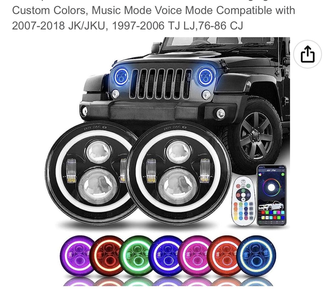 Pair Of Led Headlights 7” Inch Round With RGB Halos DRL