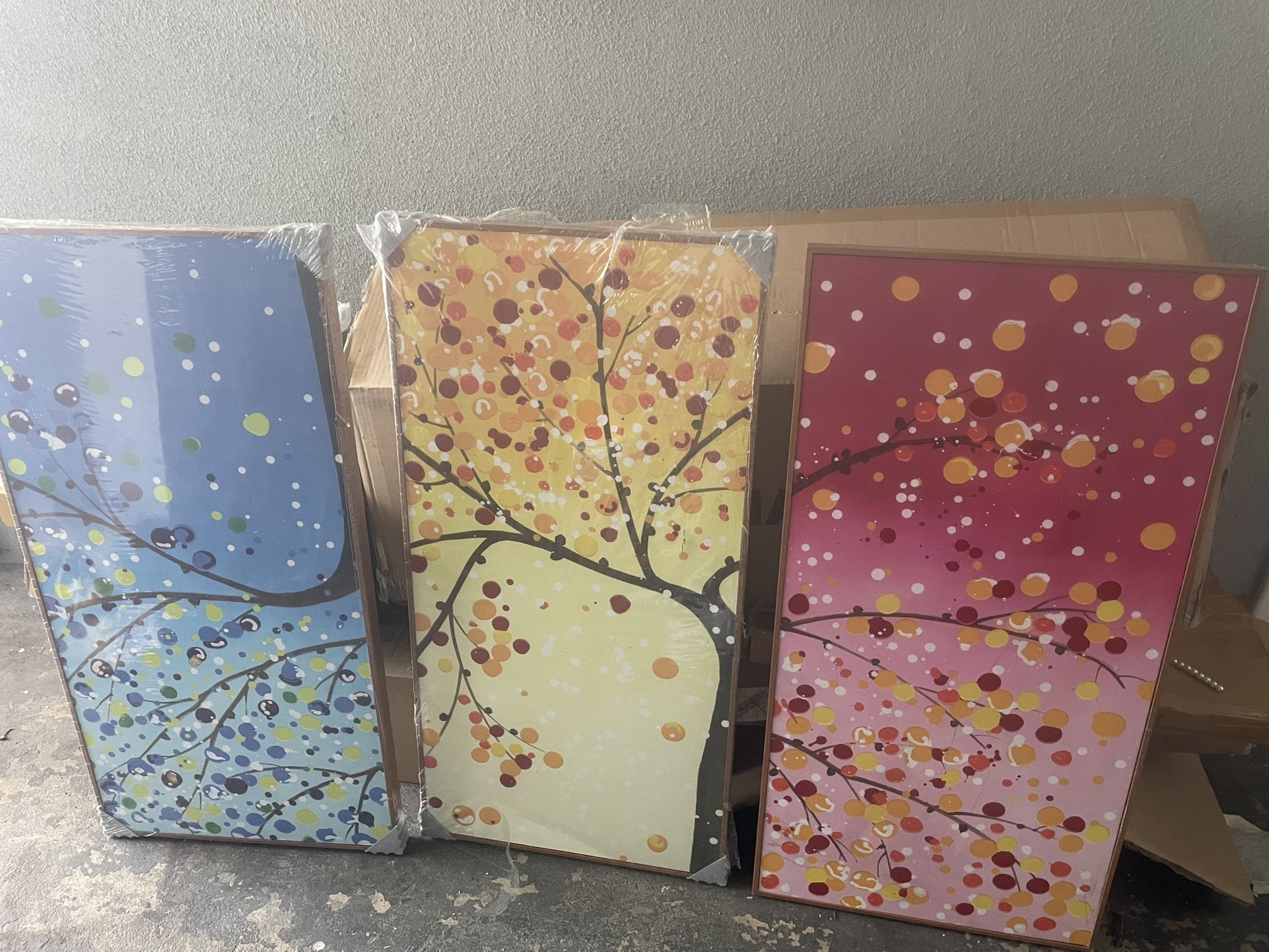 Set of 3 separate paintings of tree. New but no damage .