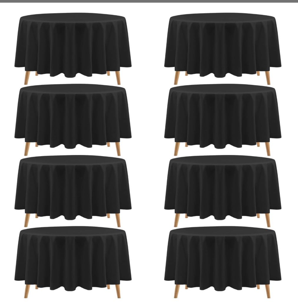 Teruntrue 8 Pack Round Tablecloths - Polyester 90 Inch Black Washable Table Covers For Round Tables - Stain Resistant, Wrinkle Free, Wedding & Banquet INV: 987301 Like new