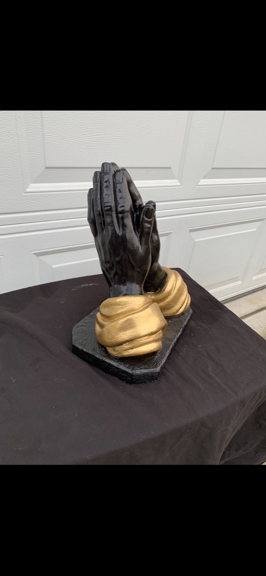 Praying hands statue