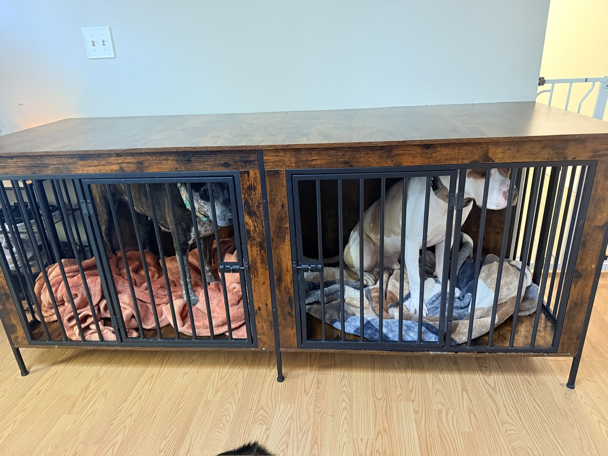 Half furniture/half dog crate! One dog is roughly 55 lbs and the other 70 lbs. Will be cleaned and disinfected before sale. Preferably pick up. Feel free to pm any questions.