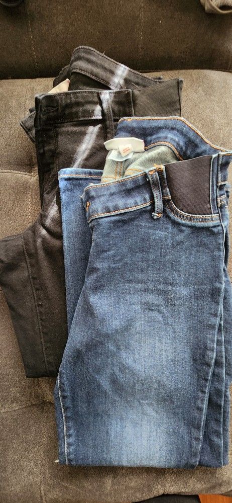 Maternity jeans 4 with stretchy over belly cloth, 2 with stretchy side low rise under belly from target, kohls, and shein. Size 8/10 large
