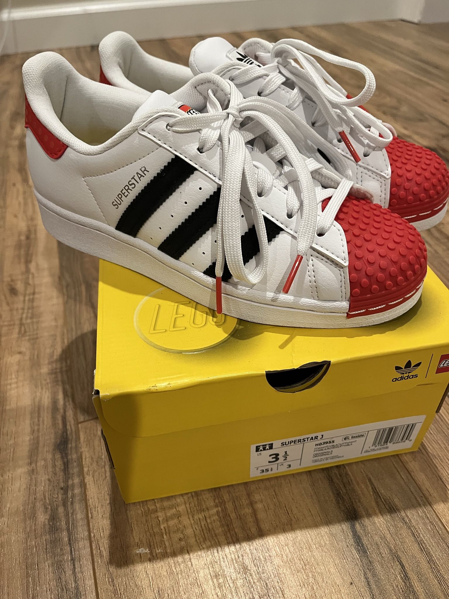New in box Newer used ADIDAS SUPERSTAR LEGO Big Kids Size 3.5 Location Freehold NJ Pick up only