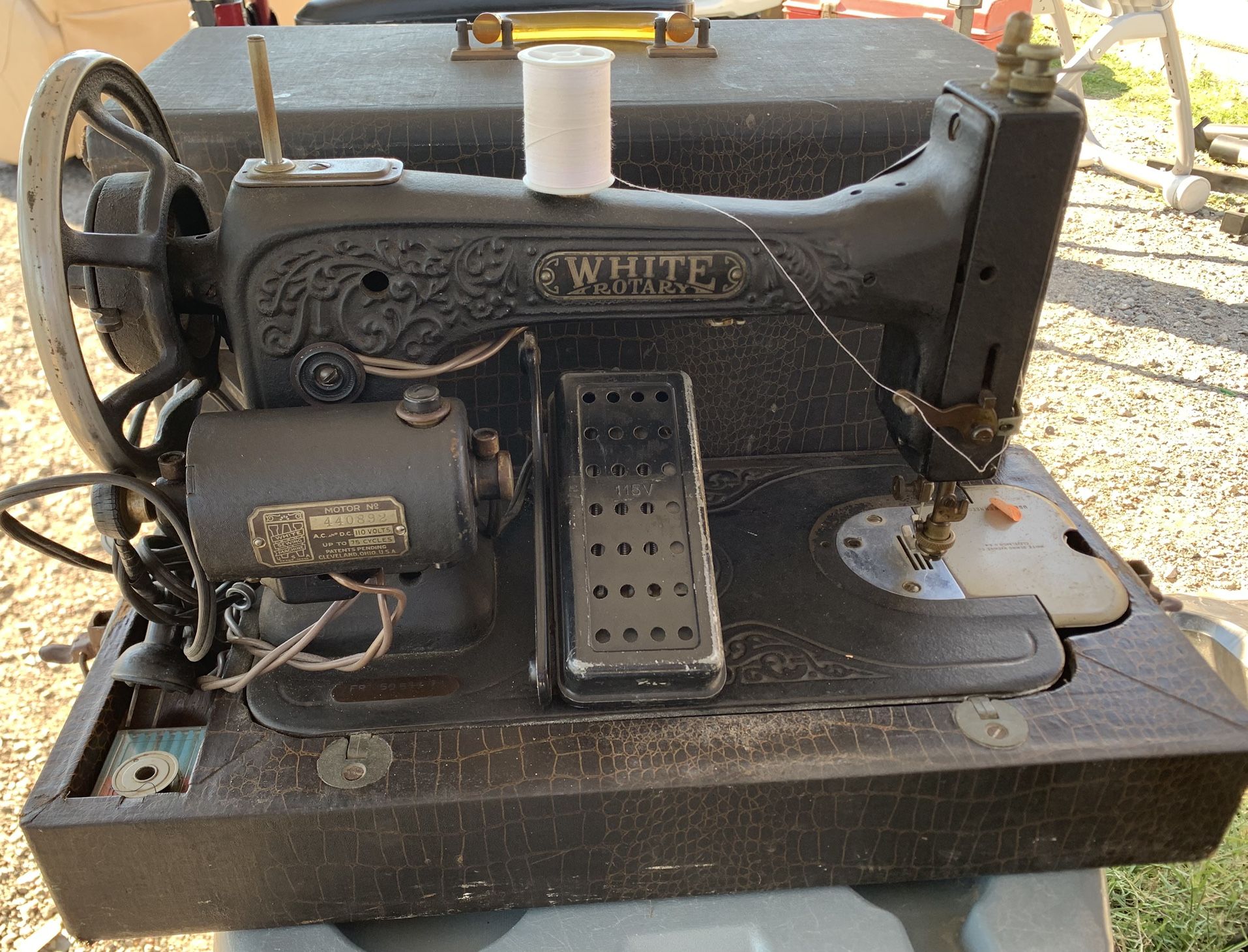 Antique Sewing machine the brand is White Rotary it work great. It can also be a beautiful display for people that are into collecting and decorating their home with coolest vintage items. Comes in its original wooden box. It’s in great conditions.