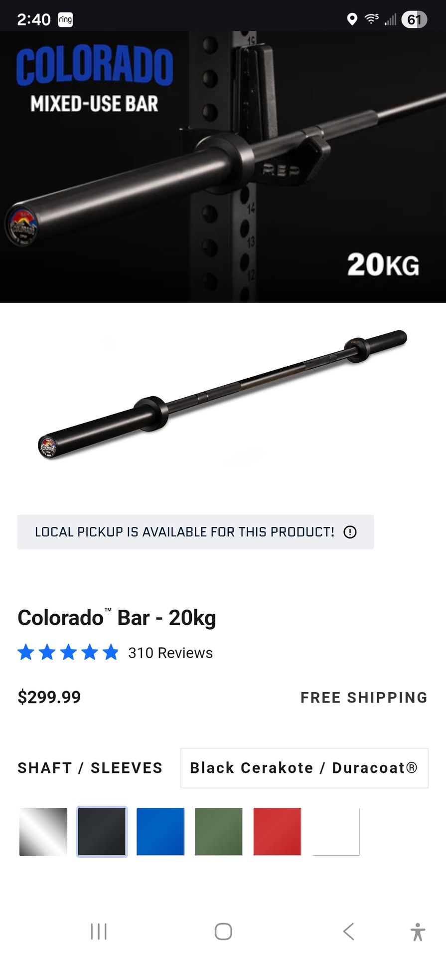 Bar is brand new, color Black, never used, sealed in original packaging. Made from REP Fitness, purchased w/ tax for $335, selling for $225 ✅️ Local meet up only Have questions❓️Just ask!