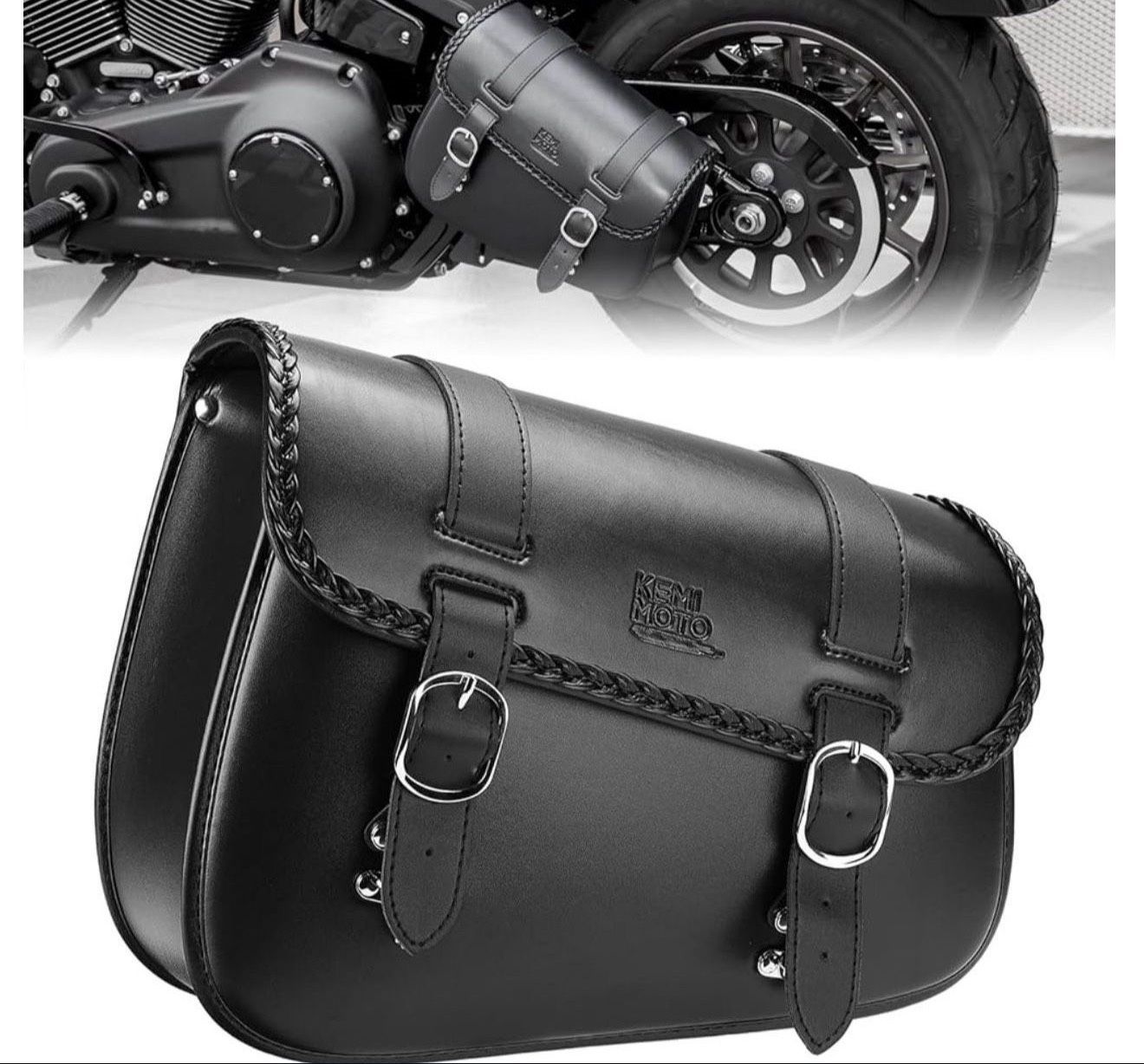 KEMIMOTO Motorcycle Swingarm Bag 10L Left Side Bags Swing Arm Bags with Synthetic Leather Compatible with Softail Sportster S Models Dyna Low Rider Fat Bob