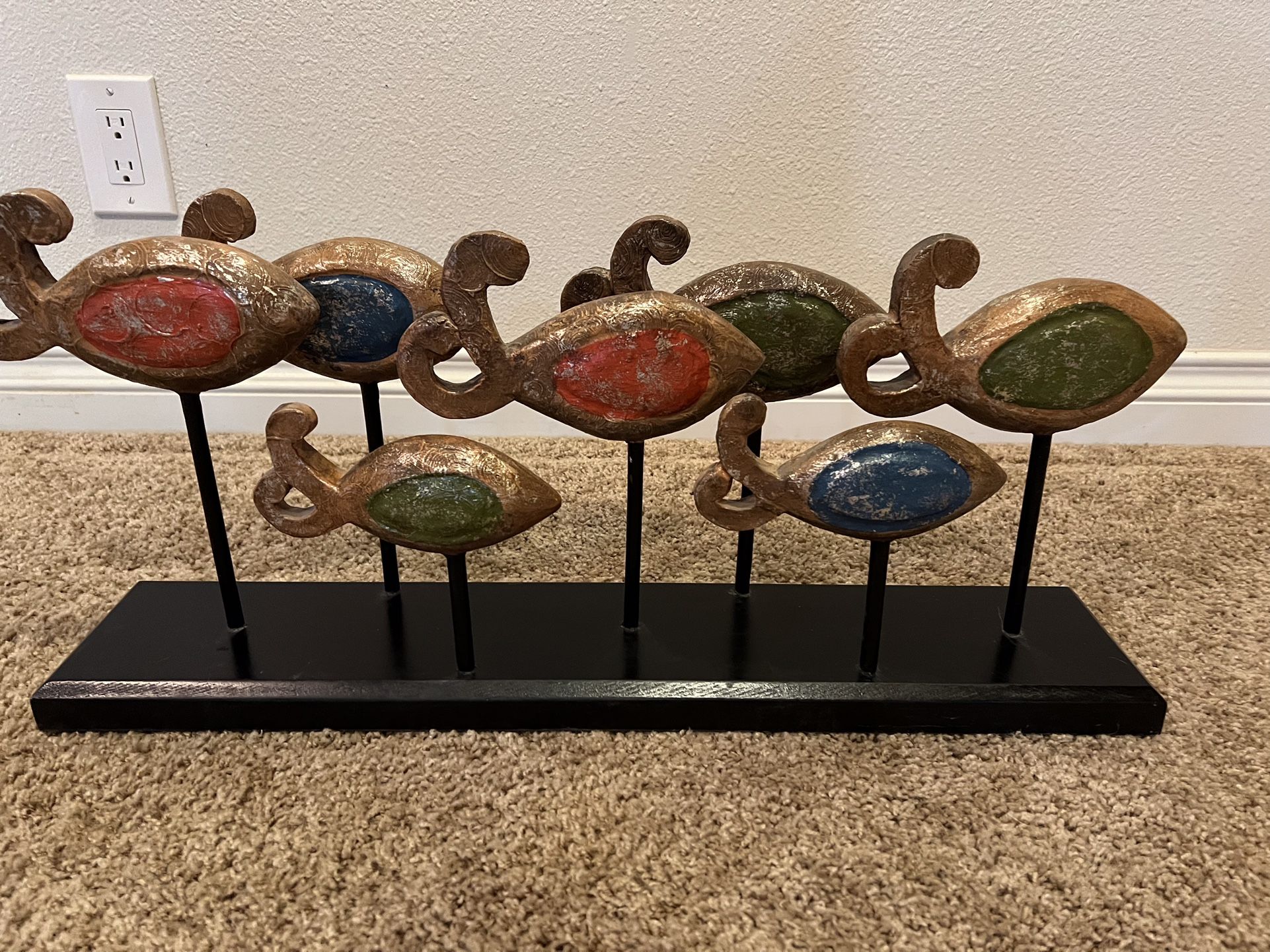 Wood carved school of fish mounted on a black base, great decor