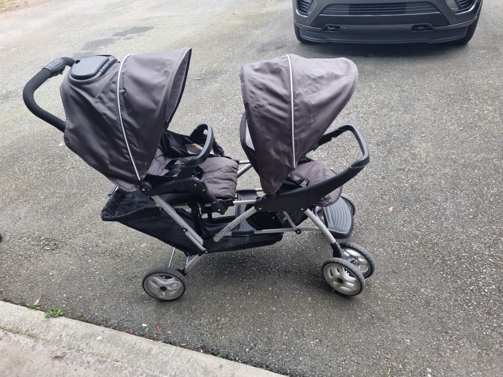 Twin stroller Graco DuoGlider in good working condition. Very comfortable for two kids. Seats recline and fold easily. • Lightweight and easy to fold • Large storage basket • Cup holders for parents and kids • Smooth wheels Everything works great. Clean and ready to use. Price: $65 Pickup in Everett.