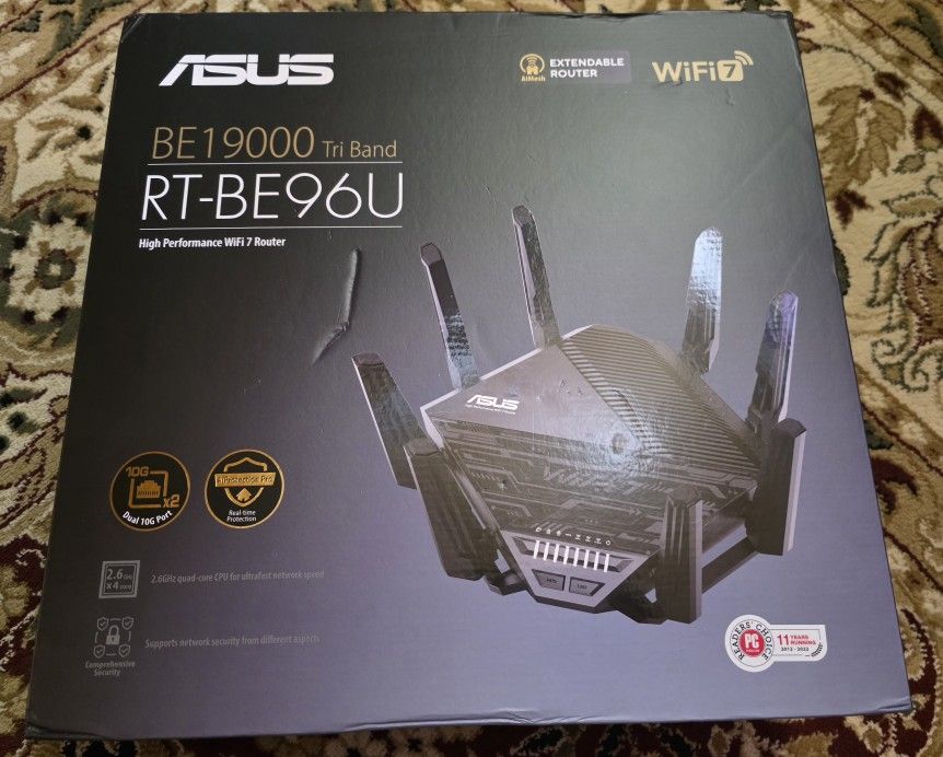 ASUS RT-BE96U BE19000 802.11BE Tri-Band Performance WiFi 7 Extendable Router