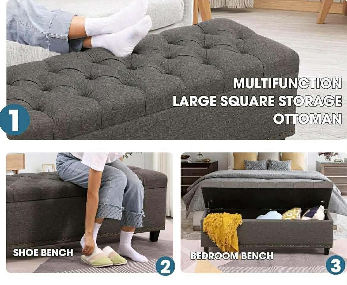 51" Ottoman Storage Benches, 30 Gallons End of Bed Storage Bench, Large Rectangular Ottoman, Button-Tufted Ottoman with Storage for Living Room Bedroom, Foot of Bed (Gray)