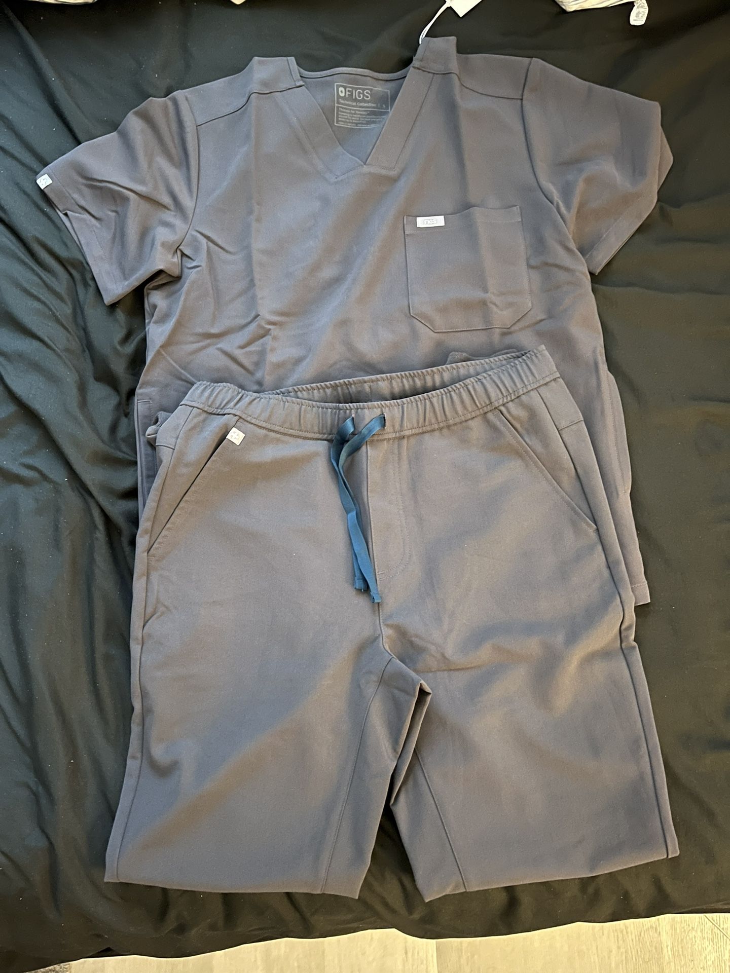 Brand new size small grey scrubs for men. The pants are joggers. Selling by set only. 1 set left. Meet up in rowland heights only.