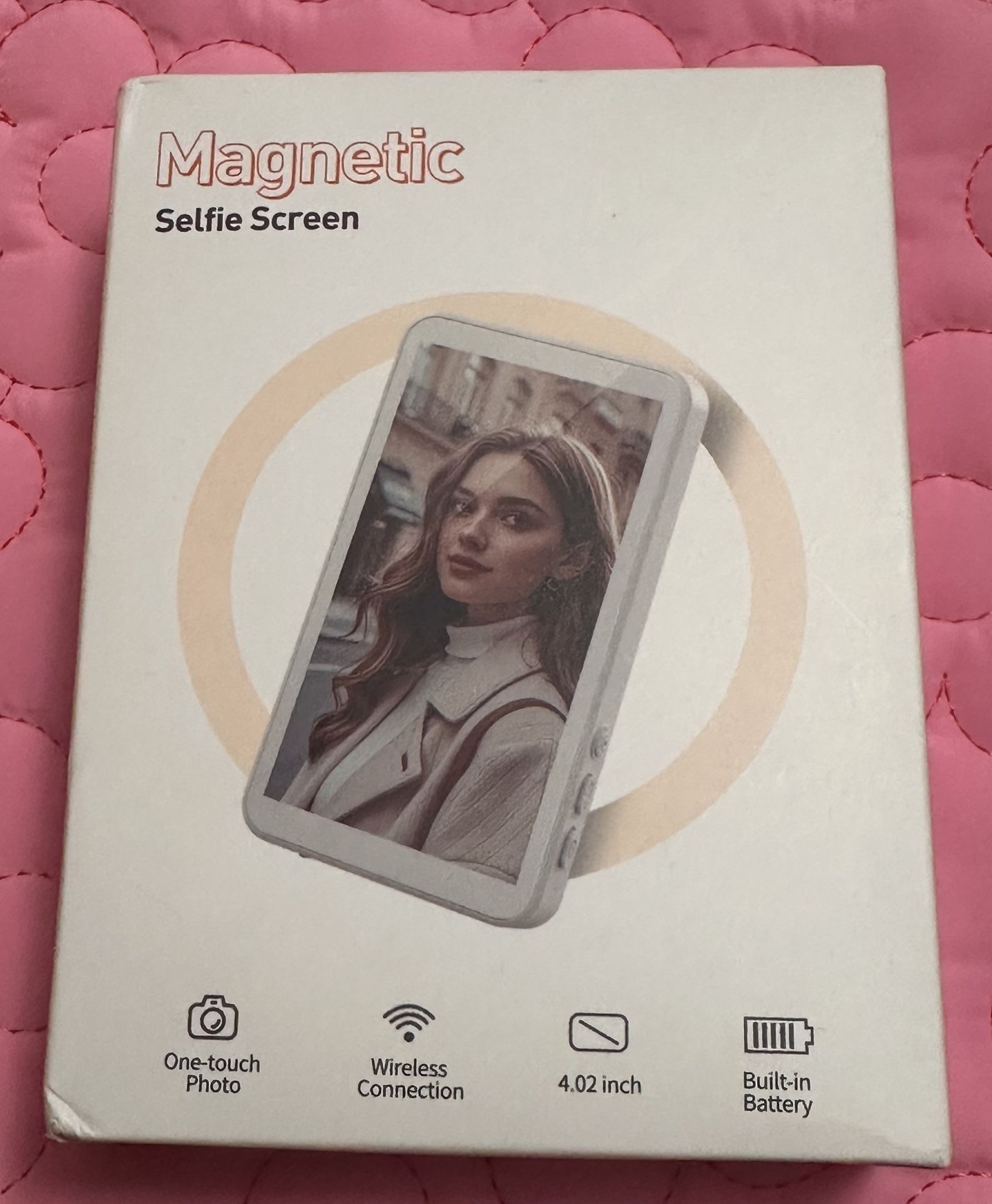 Selfie Monitor Screen for iPhone & Android - Magnetic Vlog Selfie Mirror for Phone Back Camera - Remote Control Screen Mirroring Rear Camera, Not compatible with iPhone 17 or Pixel phones. White, Brand new sealed box in perfect condition as shown on actual pictures.