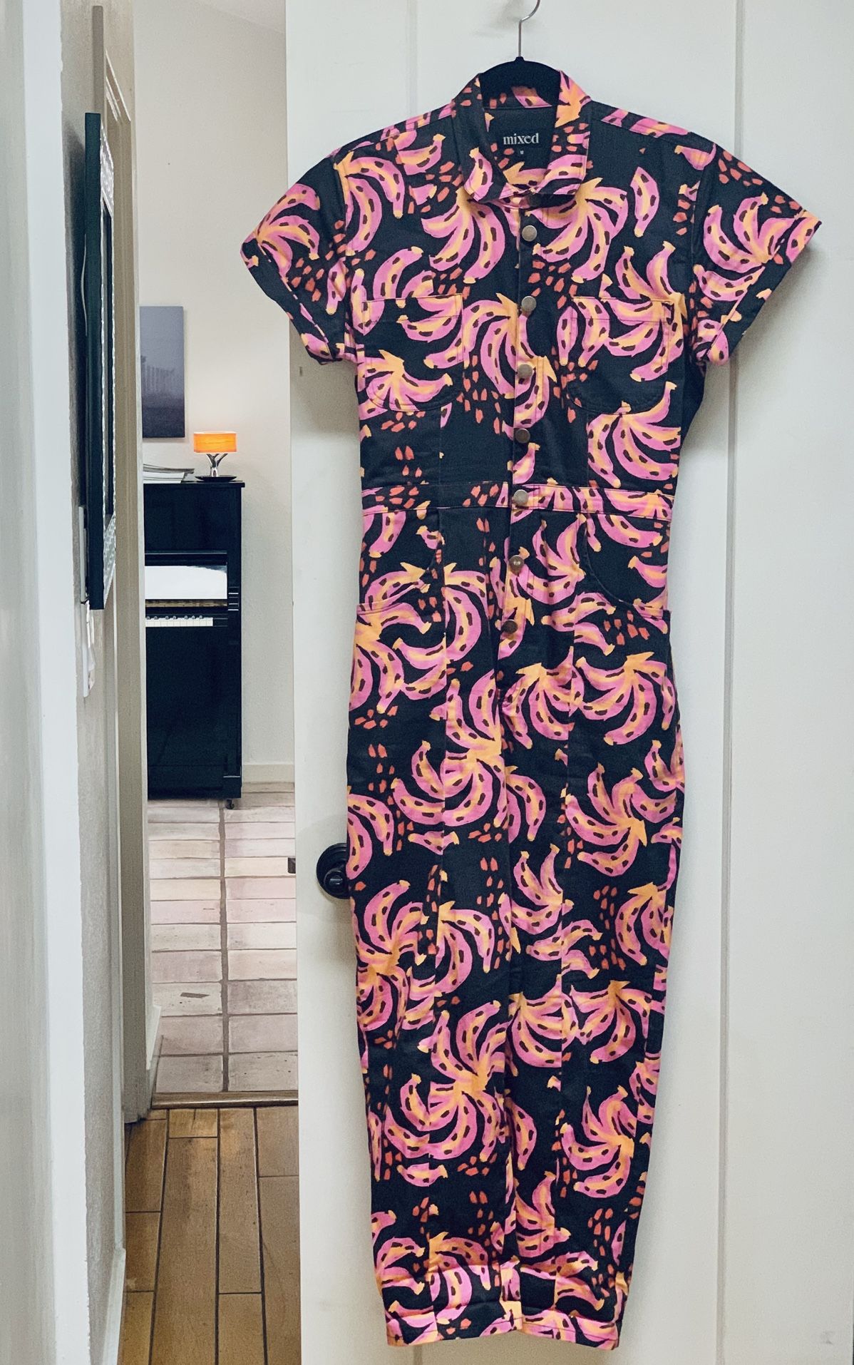 HELLO HAPPY PEOPLE EVERYWHERE!!! If you’re living your BEST sassy life… If you still dance to “Wake Me Up Before you Go-Go”… If you’re hosting dinner parties in which you set up an indoor picnic on your living room floor and hang string lights from the ceiling… If your jokes have caused someone to laugh their way into a hernia and now you’re in the middle of a civil case… If you’re the Morrie Schwartz in everyone’s lives… Then this PINK BANANA jumpsuit was MADE FOR YOU!!! Fabulousness incarnated. DESIGNER: Mixed by Nasrin 97% cotton! Elastic waistline for a flattering silhouette! Four pockets! SIZE: -Women’s Medium -Perfect for US sizes 4/6/8 -Length 56” -Pit to Pit 19” -Across the waist 15” -Inseam 23” CONDITION: -Excellent -Only worn a handful of times COLORS: -Black -Flamingo Pink -Mango Yellow -Terracotta Orange Just when you think life couldn’t be sweeter, a pink banana jumpsuit comes along & cranks it up to Level Twelve. Brace yourself for compliments cuz them’s about to rain down on you in biblical proportions. Pick-up in Danville. Cash/Venmo accepted. Shipping not available. Price is FIRM. -If that makes you un-happy, then this jumpsuit was not meant for you. FREE for the awesome possum who’s willing to dance to “Wake Me Up before you Go-Go” at a public place of my choosing. -Rehearsed choreography (no prosaic gyrations & lifeless finger snapping). -Bonus points if you bring back-up dancers (mystery gift included). -Boombox and cassette only.