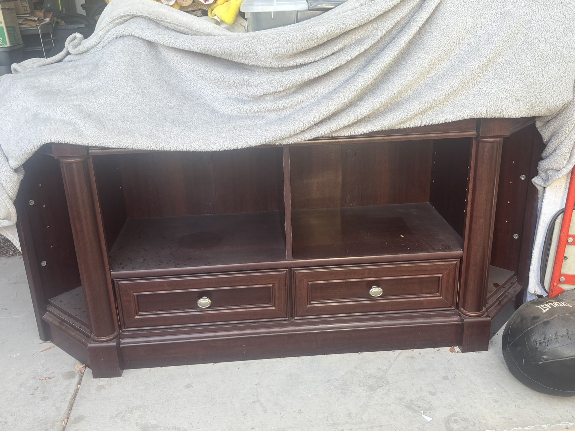 Got a new TV stand we liked better, this one is sitting in our garage just taking up space. 300$ OBO as we’re moving soon, reasonable offers as it is a very nice piece Pick up near Blue Horizons Elementary, cash only
