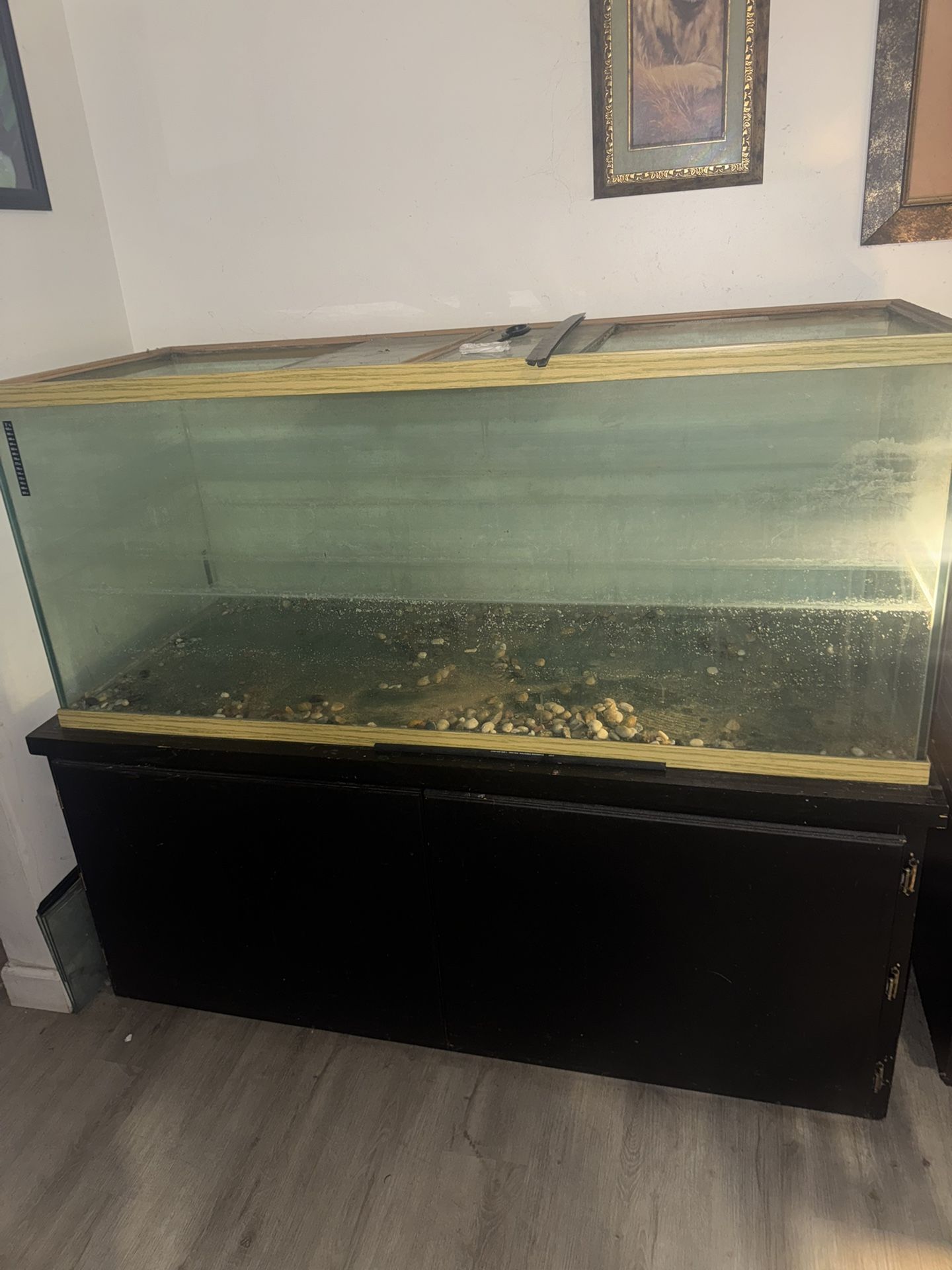 150 gallon fish tank with stand. The stand comes with a lot of storage. Will be cleaned and ready for pick up. Tank dimensions are 60.5”x24.5”x26”. Stand dimensions are 63”x27”x26”. Price is negotiable Doesn’t come with the items in the stand storage area