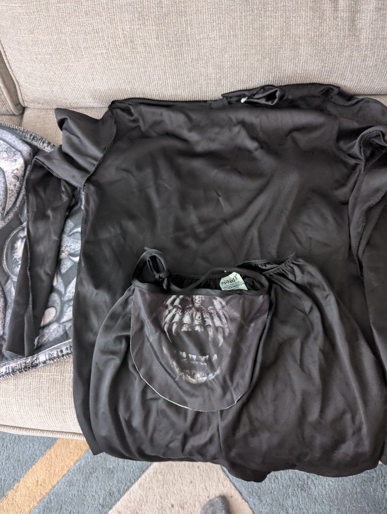 Star wars Halloween costume set: mask, knee pads, top, bottom, and shield. Great condition. Bought from Spirit Halloween. Worn once before outgrowing this costume. Fits sizes 12-14. My kid wore it when he was 11