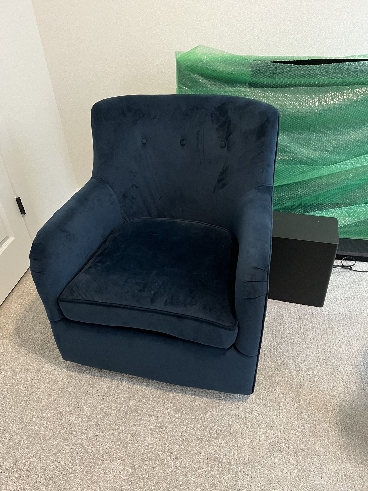 Dark blue suede sofa chair, very comfortable and gently used.