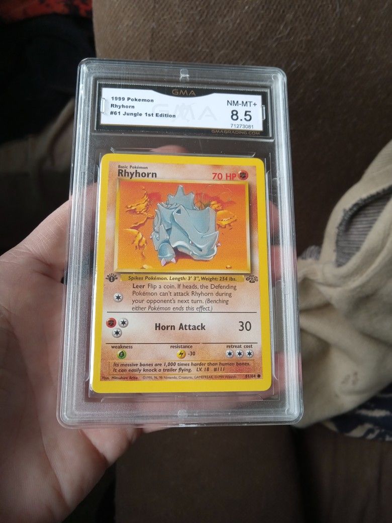 1999 POKÉMON RHYHORN #61 JUNGLE 1ST EDITION. CARD IS IN GREAT CONDITION. CASH MEET UP OR MAILING OPTIONS AVAILABLE.
