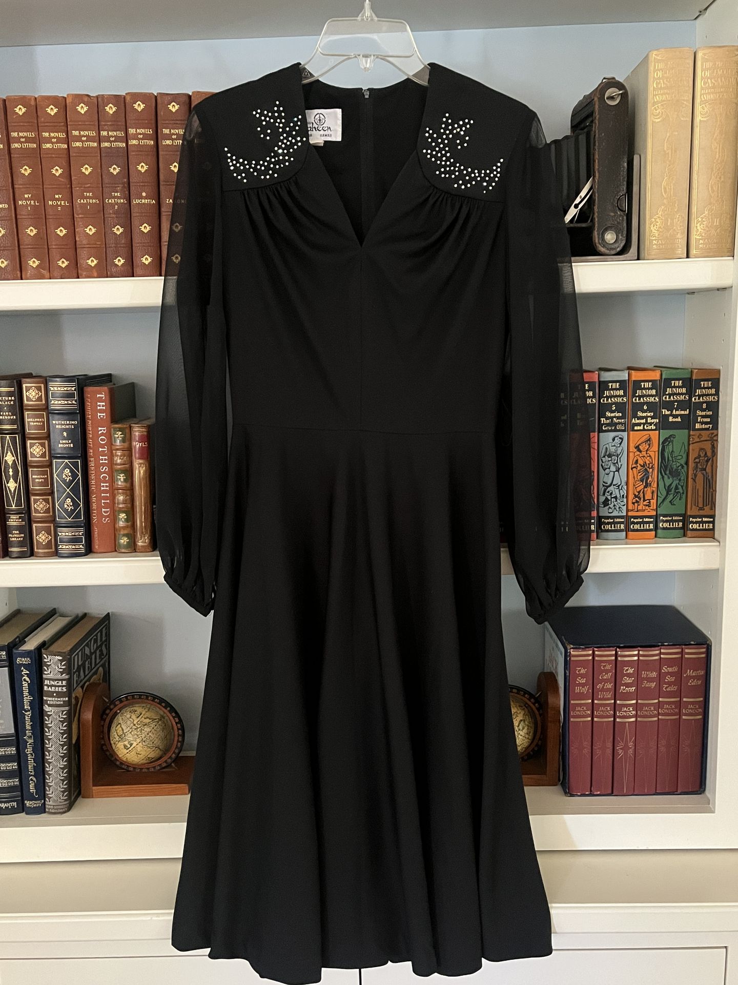 Vintage ALFRED SHAHEEN Knee Length Black Formal Maxi Dress Rhinestone S