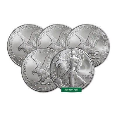 (5) Random Date American Silver Eagles 1 Oz Each