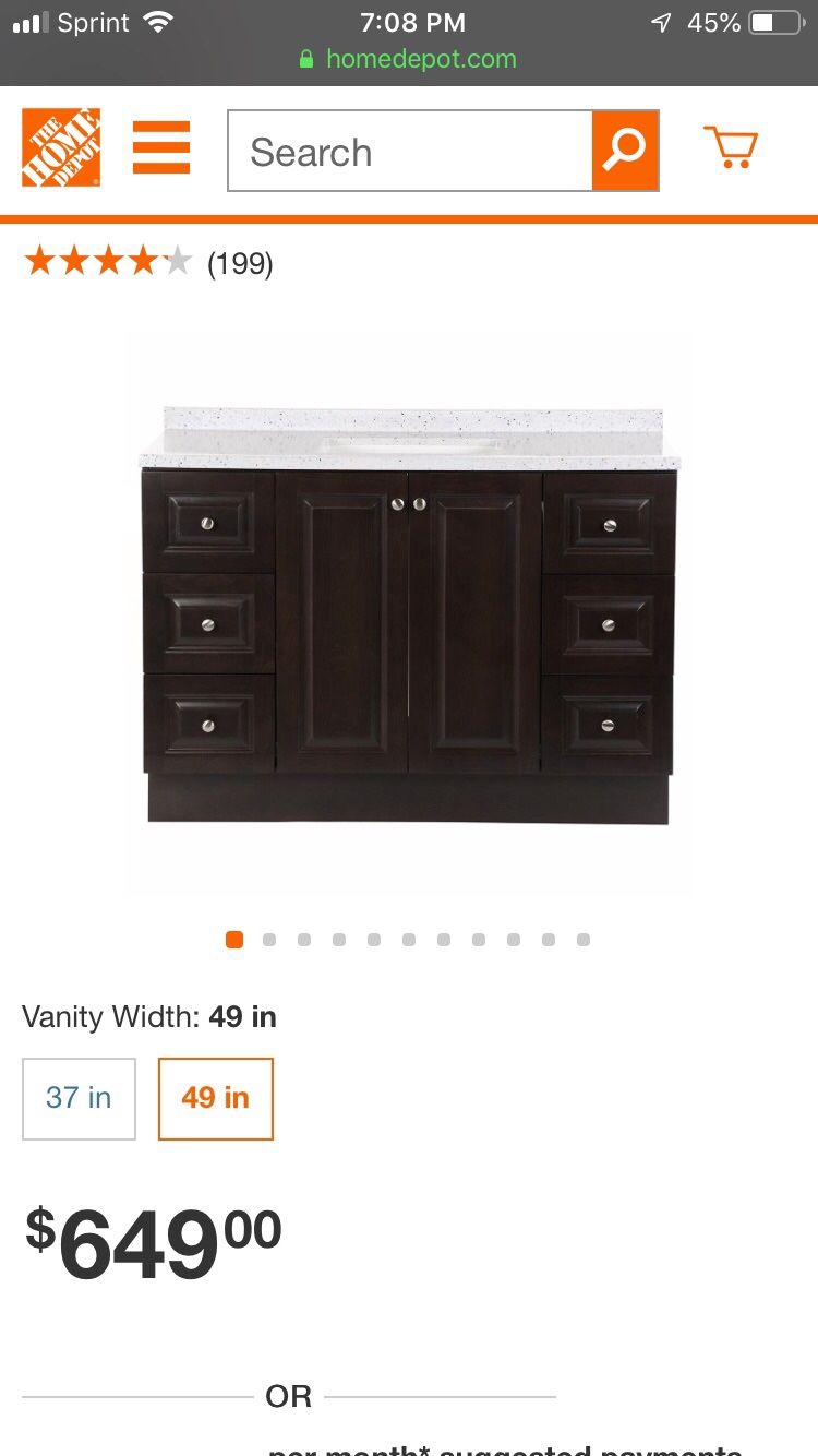 New bought and was never installed 48 in vanity combo expresso color cabinet White & gray top Pay $649 and selling for $400.00 Need it out by sunday