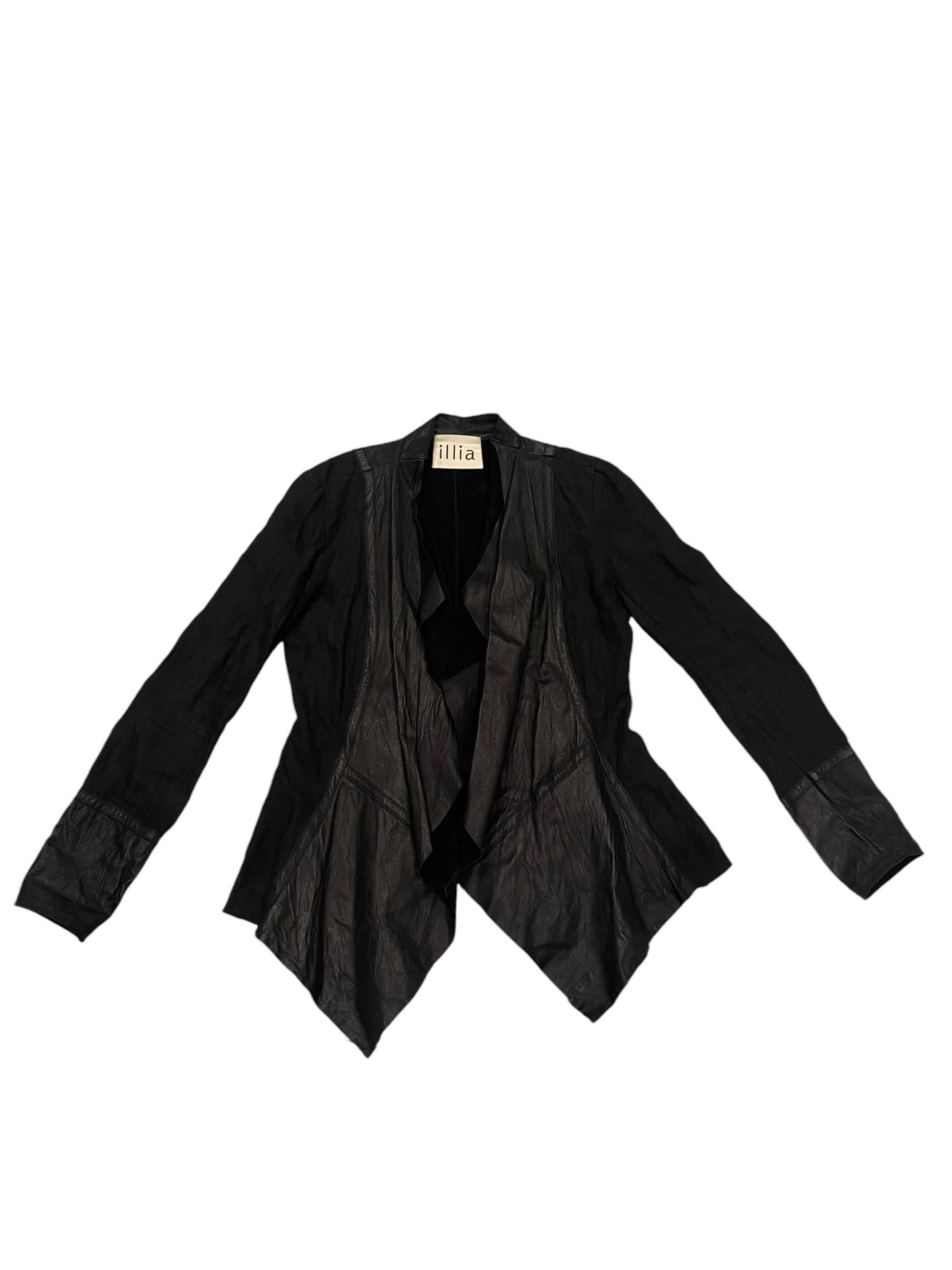 ILLIA Women 8 Black Leather Modal Open Front Cardigan Layer Jacket Long Sleeve