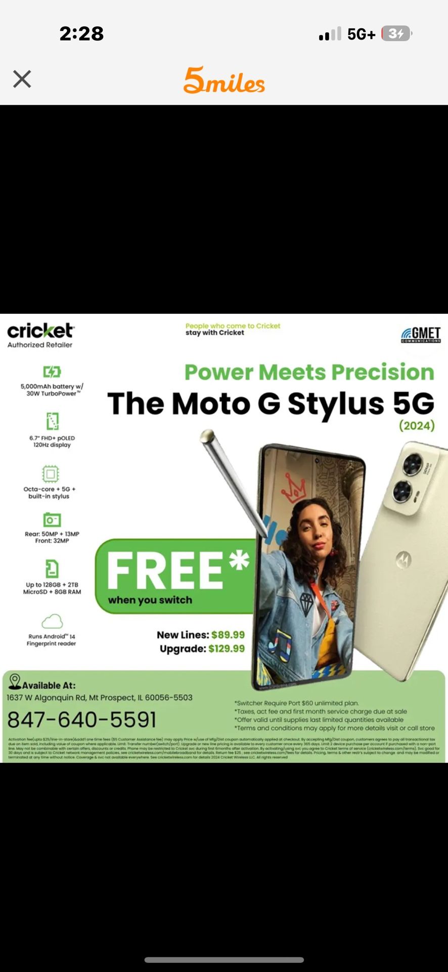 Port your number to Cricket wireless and get the new Moto G Stylus 2024 for free. Taxes and activation not included.