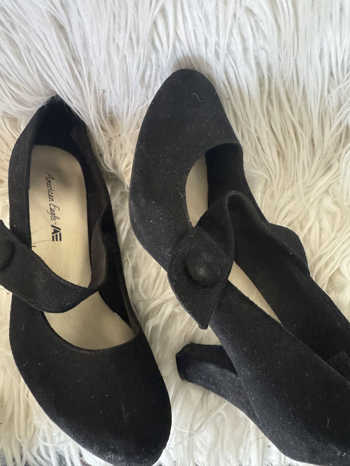 4$ BLACk SUEDE AMERICAN EAGLE HEELS