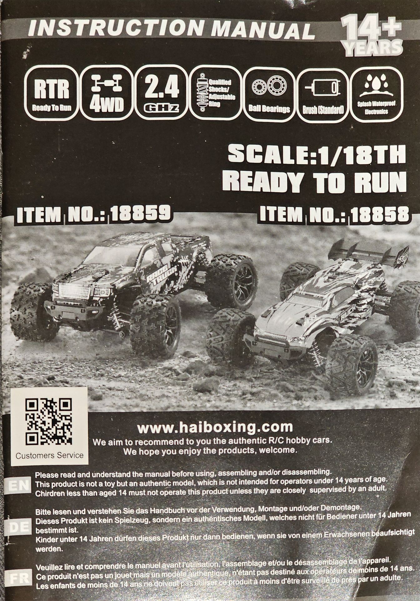 HAIBOXING 1:18 Scale All Terrain RC Car 18859 *4WD RC Truck *2.4 GHz Remote Control *Rechargeable Battery *Battery Charger *Manual Pick Up in Auburndale