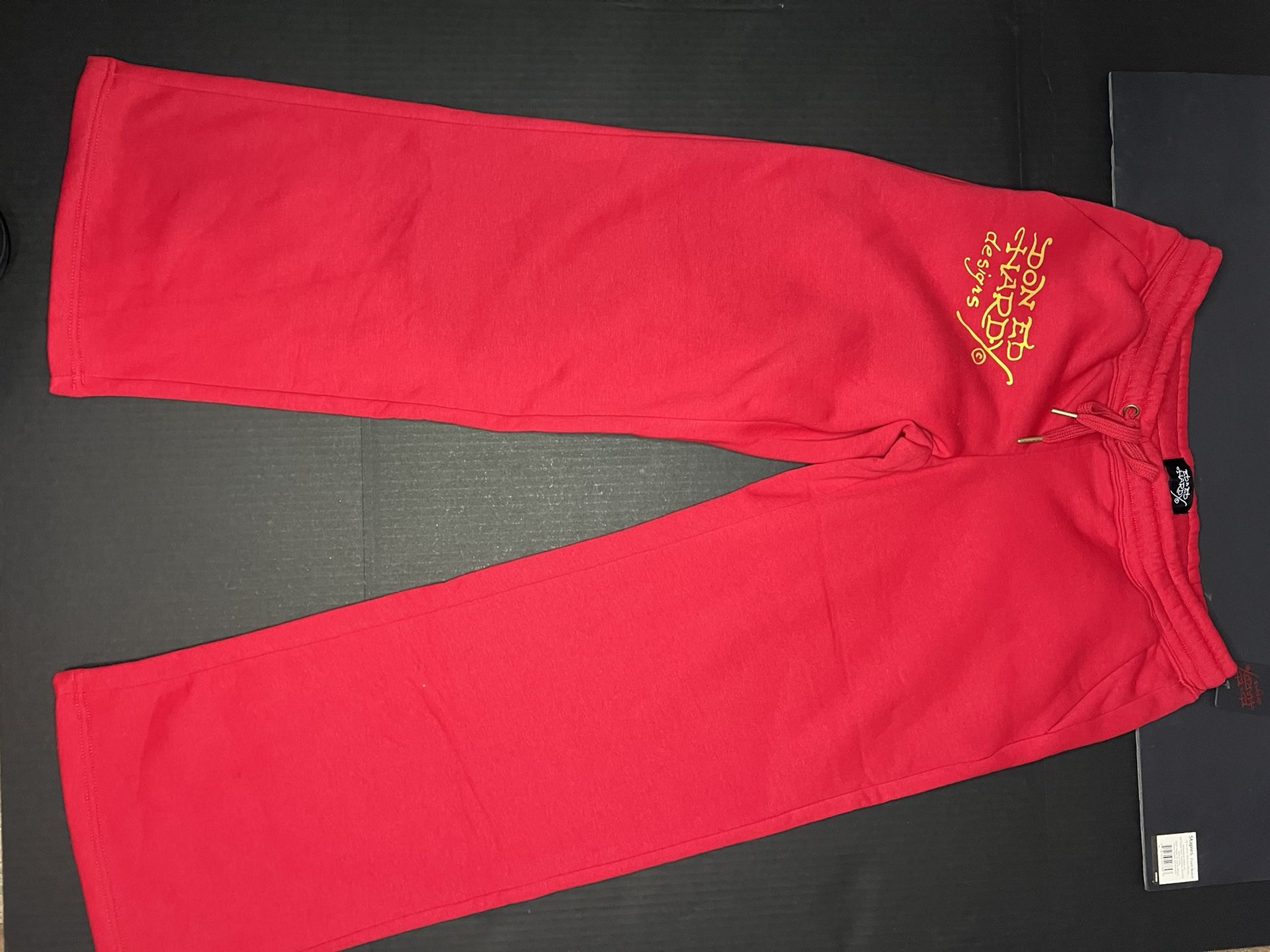 Ed Hardy Women's Red Wide-Leg Sweatpants, Size Large, Dragon Retro