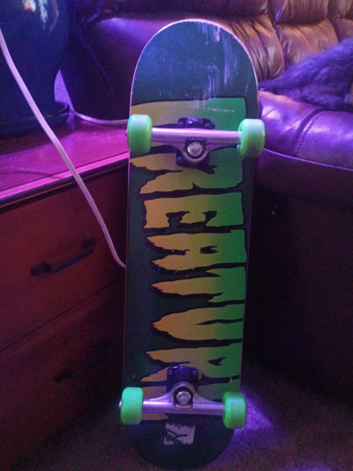 An 8" CREATURE complete skateboard with brand new OJ wheels is a great setup for cruising and carving. The OJ wheels are known for their smooth ride and durability.
