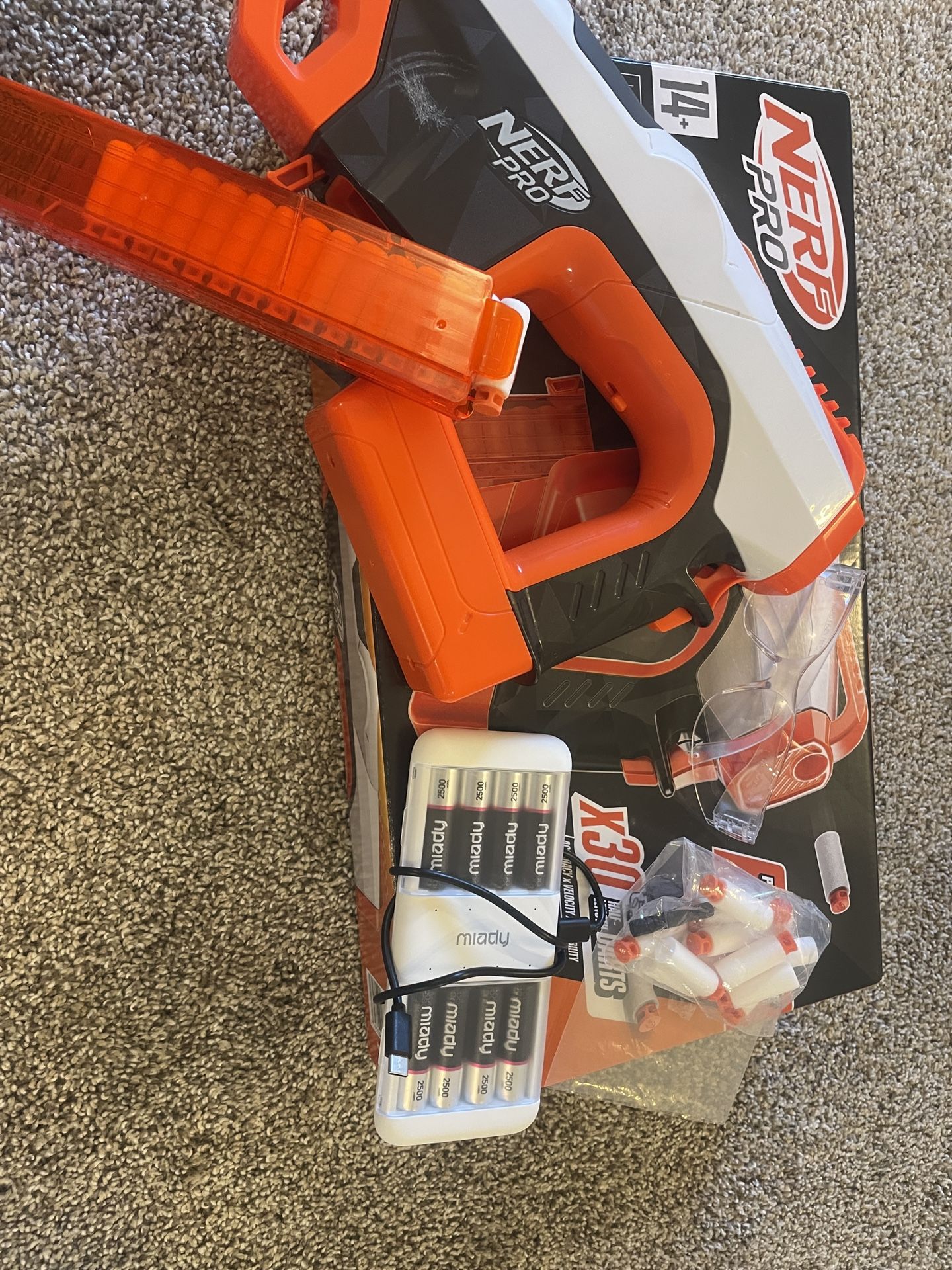 Almost New Nerf Pro blaster (with rechargeable batteries)