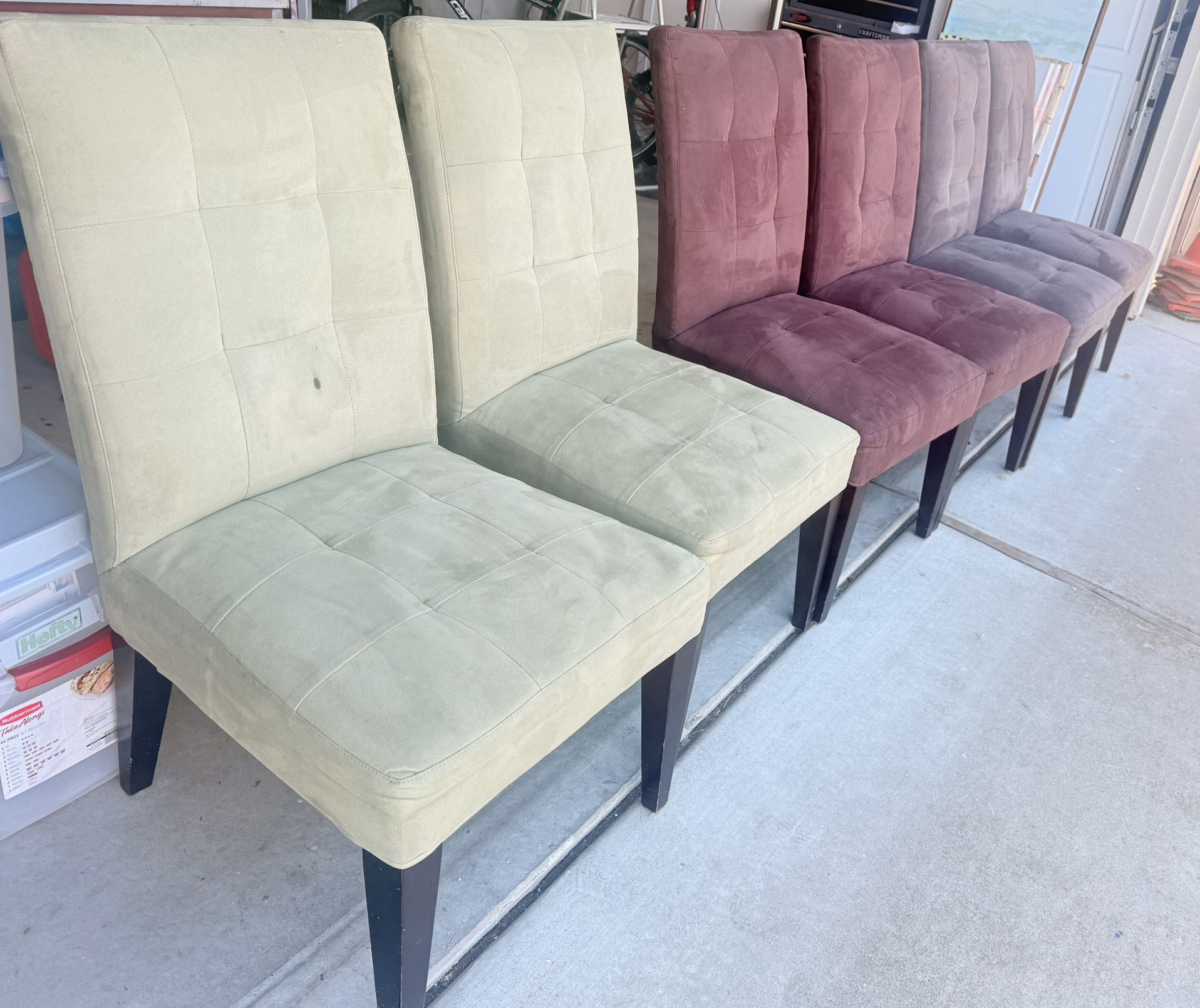 Upholstered Chairs are from crate and barrel- 6 total. Microfiber. Ready for a new home. Pick up in Oakley I had the chairs with covers as you can see in the picture. $50 per chair or $250 obo