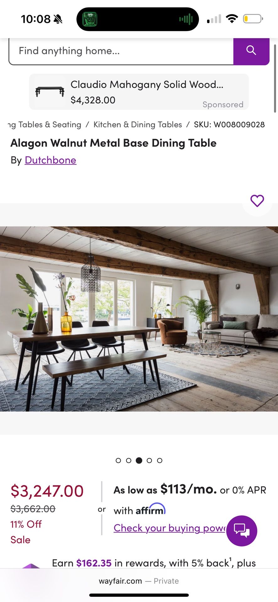 Dutch Bone Dinner Table - Sturdy Wood and metal. $3240 on sale in wayfair. We have a bench to match if desire ($500)