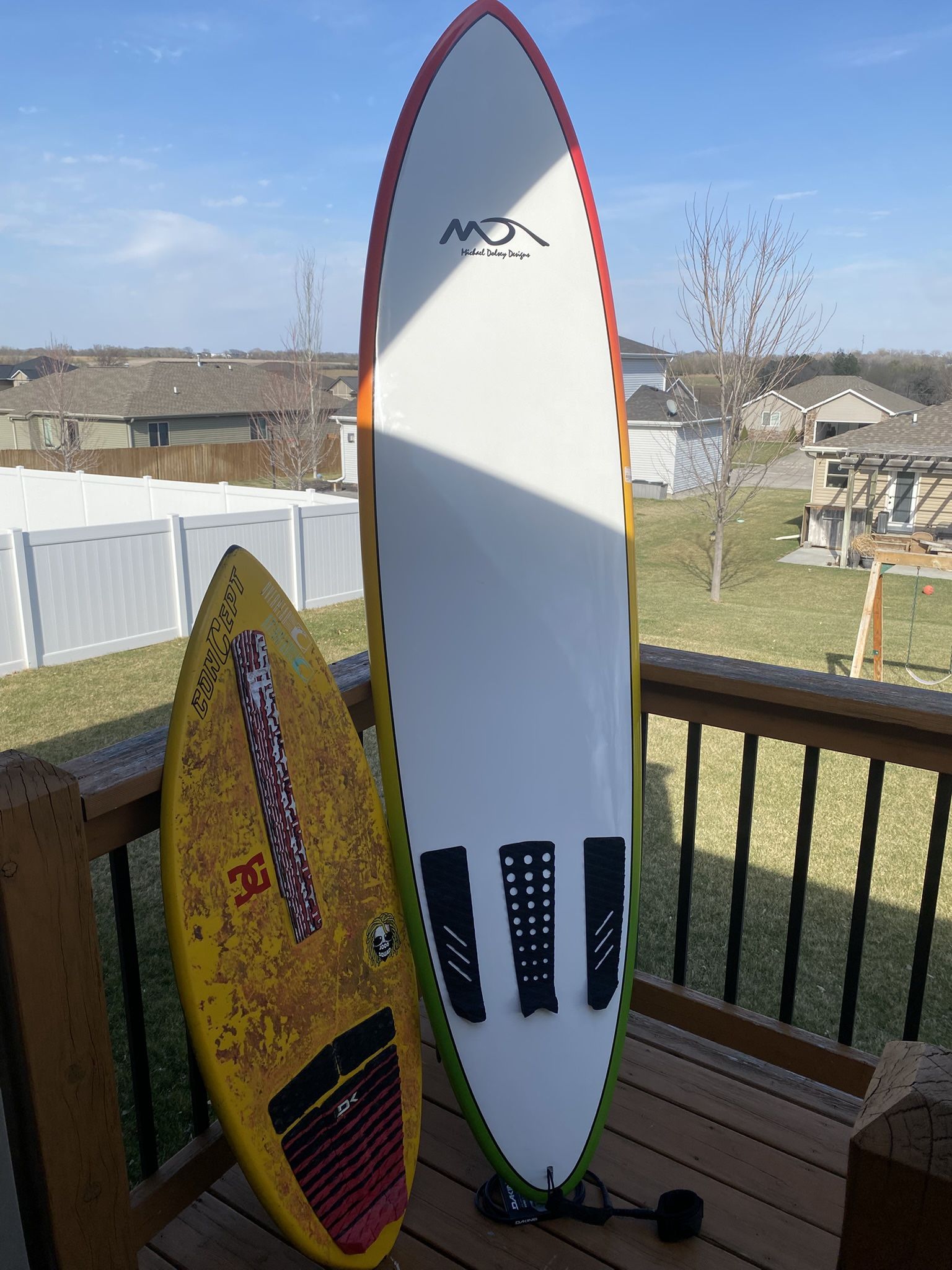 Brand new beginner surf board Good for someone new or a decent lake board Never used a scratch and scuff here and there from moving Has 3-style feet pads He 3 style fins 300 obo I need gas money
