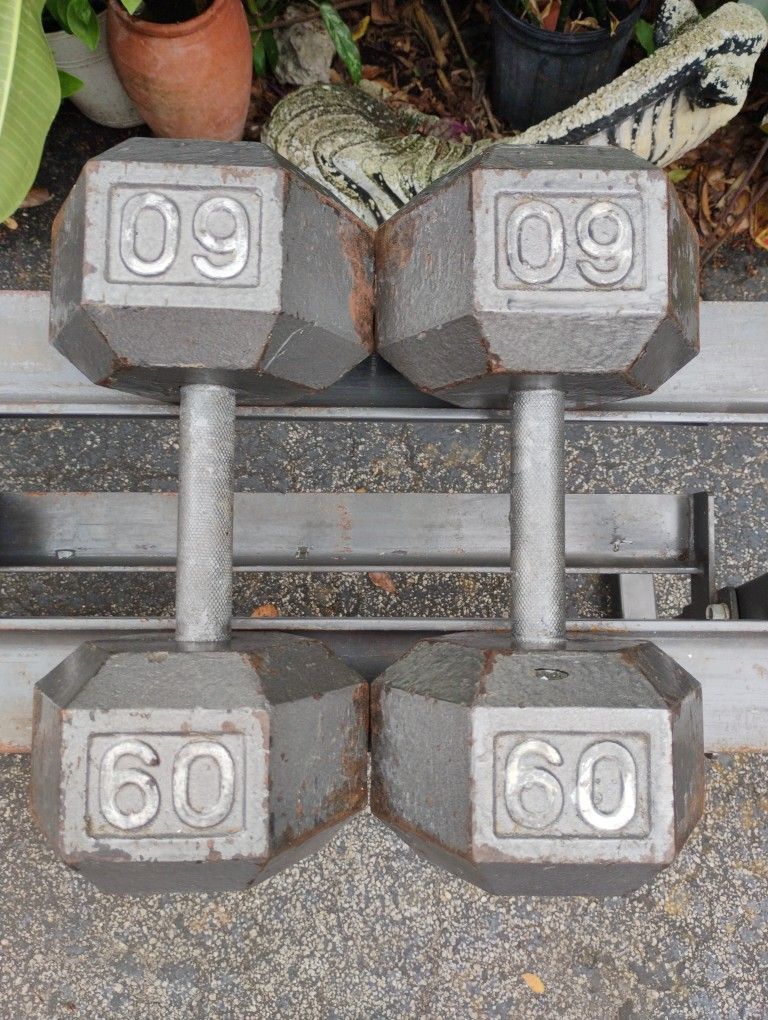 PAIR OF 60 LB. STEEL HEX DUMBBELLS