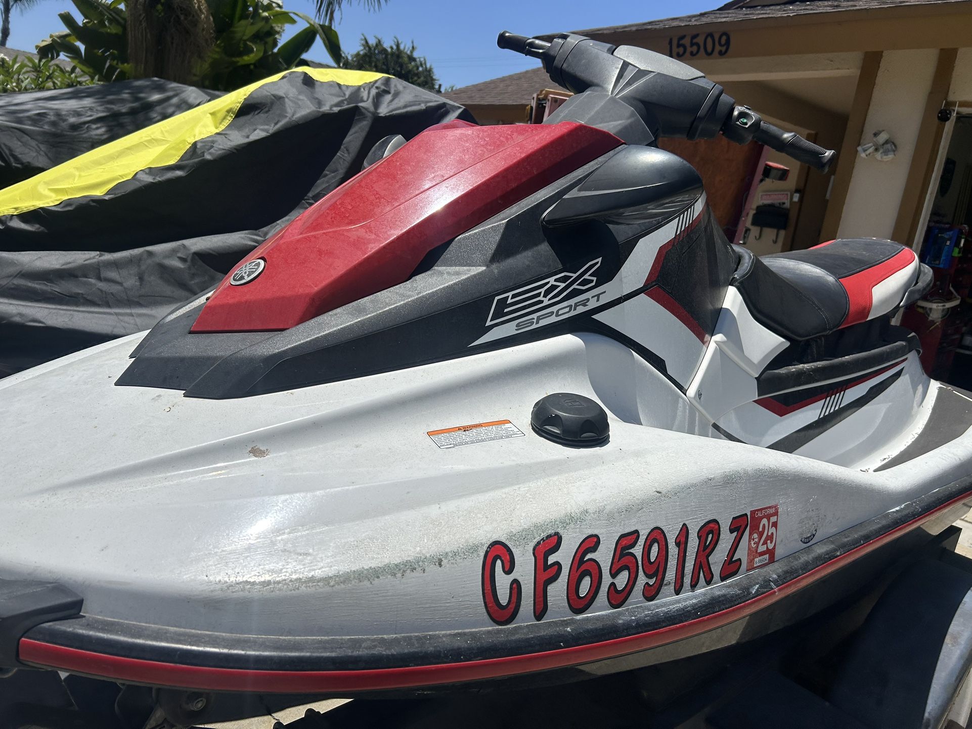 2018 Yamaha ex sport. Just had full service. Oil change and spark plugs. No mechanical issues. Ready to use the rest of the year.109 hours. Has a water box bypass so it’s a little bit louder. Selling to get a faster one.. I am including a double trailer. Pink slip in hand. $3900 for the double trailer and the Waverunner. Yamaha jet ski Waverunner turn key water ready. Kawasaki Seadoo sea doo Jin