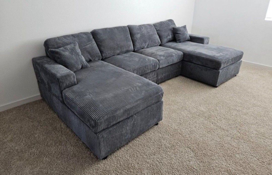✅️✅️4 pc fog grey corduroy fabric sectional sofa with double chaise✅️✅️✅️