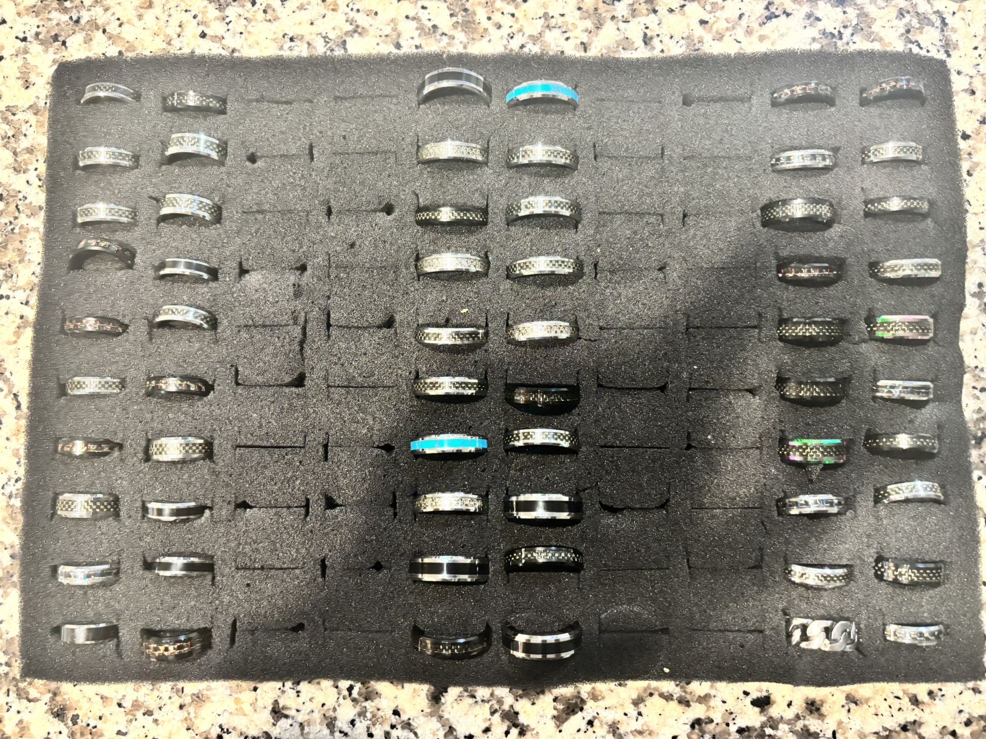 Lot of Men’s Tungsten rings in various sizes, colors and styles. 200 rings in total. Here is a breakdown of the number of rings in each size that are in this lot. Asking $550 for all 200 rings. Size 4: 2 Size 6: 15 Size 7: 15 Size 8: 8 Size 8.5: 4 Size 9: 33 Size 10: 11 Size 10.5: 21 Size 11: 28 Size 11.5: 4 Size 12: 1 Size 12.5: 4 Size 13: 23 Size 14: 31