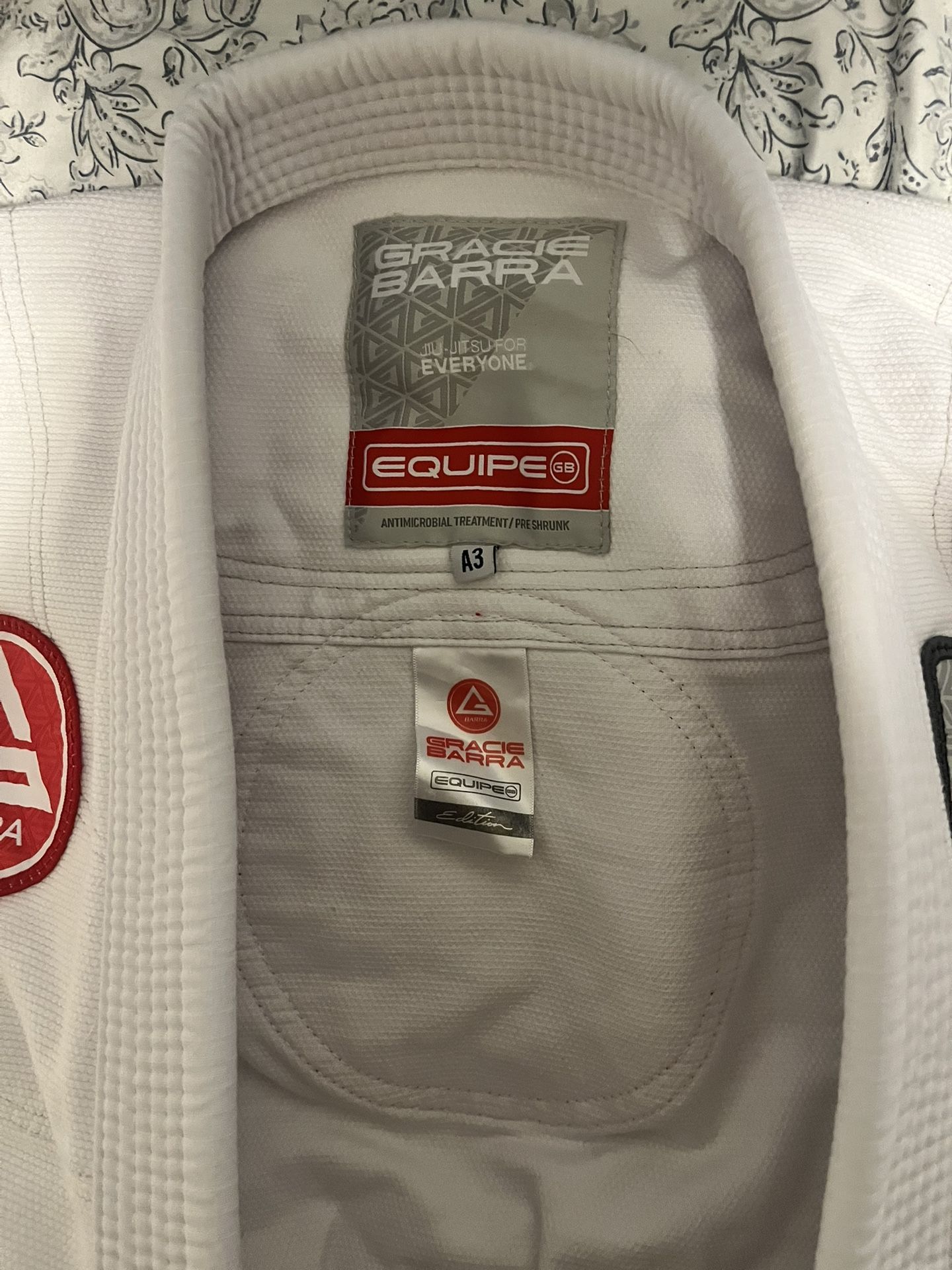 This is still in great condition hardly used. I lost a lot of weight and had to get a size down. Adult A3 Gi Top Bottom and the Belt