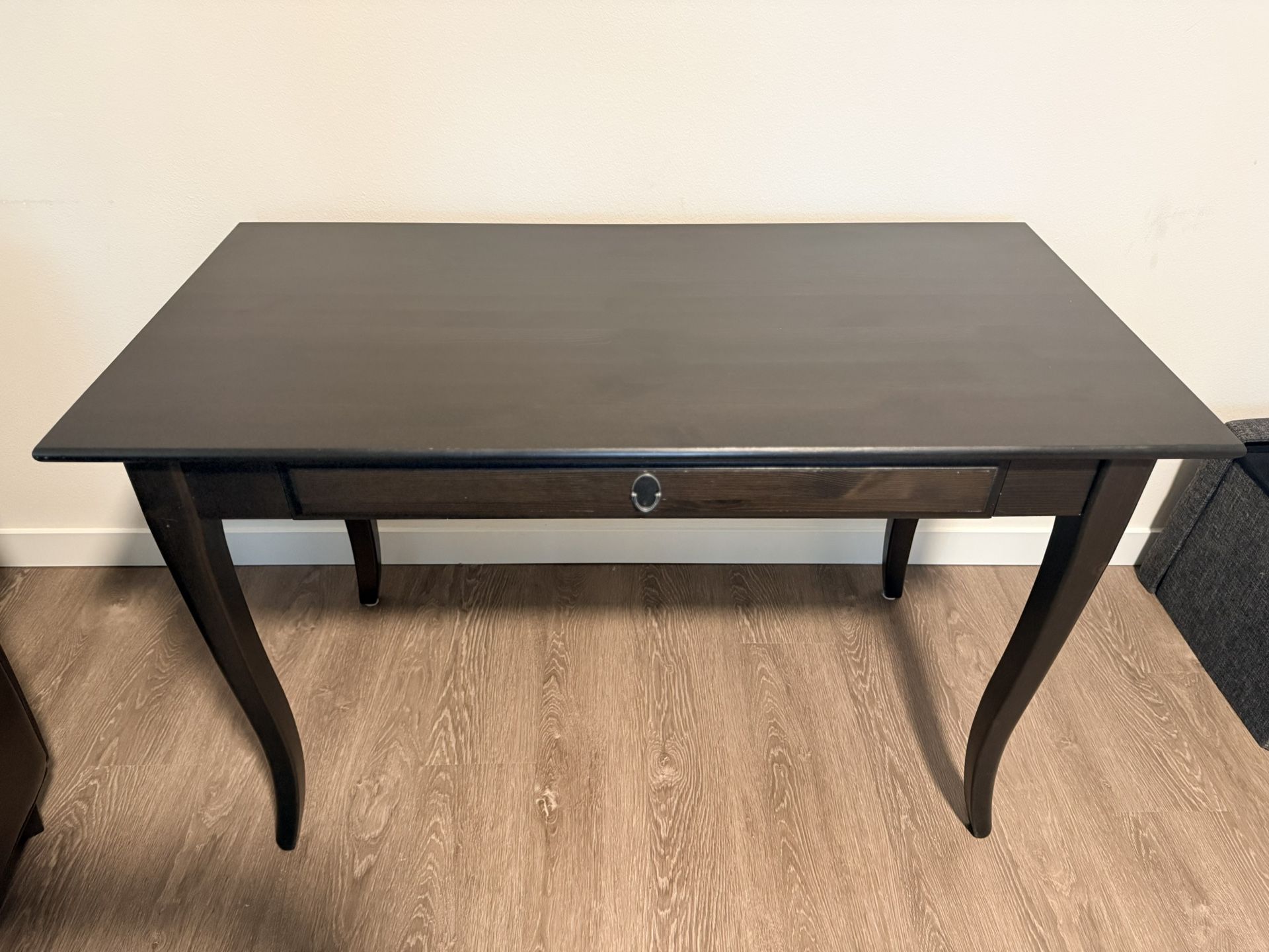 Selling an IKEA solid wood desk/Vanity. It’s in great condition, comes with a drawer. Great for a office desk or a vanity for makeup. Desk is made of solid pine and I believe it’s in the Hemnes family from IKEA. Dimensions: 47 in. wide, 24 in. deep, 30 in. Tall